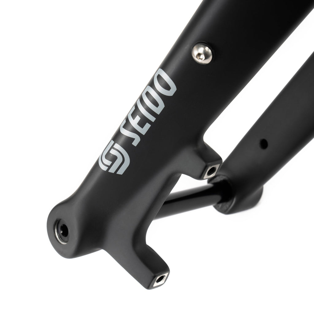 Our BPC (Bike Packing Carbon) fork replaces maintenance-needy and heavier suspension forks on mountain bikes, to reduce weight and minimize the amount of parts subject to potential failure. With its triple cage mounts, BPC makes a perfect fork for MTB/ bikepacking rigs or wide-tired ultra-distance race builds.