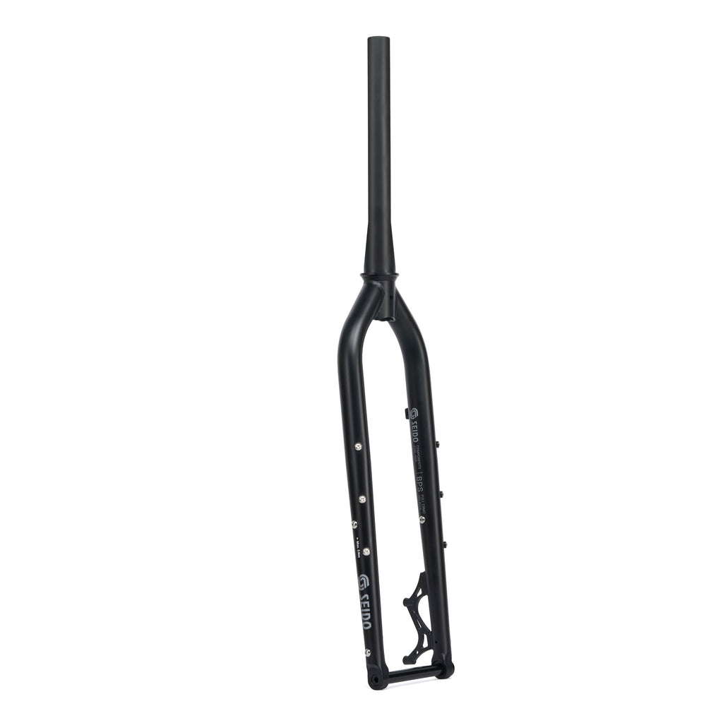 Built to withstand the most unforgiving conditions, our BPS (Bike Packing Steel) fork is made from proven Cr-Mo steel and fitted with all the mounts required to kit out your front-end with lights, racks and cages. Designed to replace suspension forks on world-exploring MTBs, it can fit a huge variety of bikes intended to accommodate 120-140mm suspension forks. BPS is there for the serious expedition, where there is no room compromise functionality.