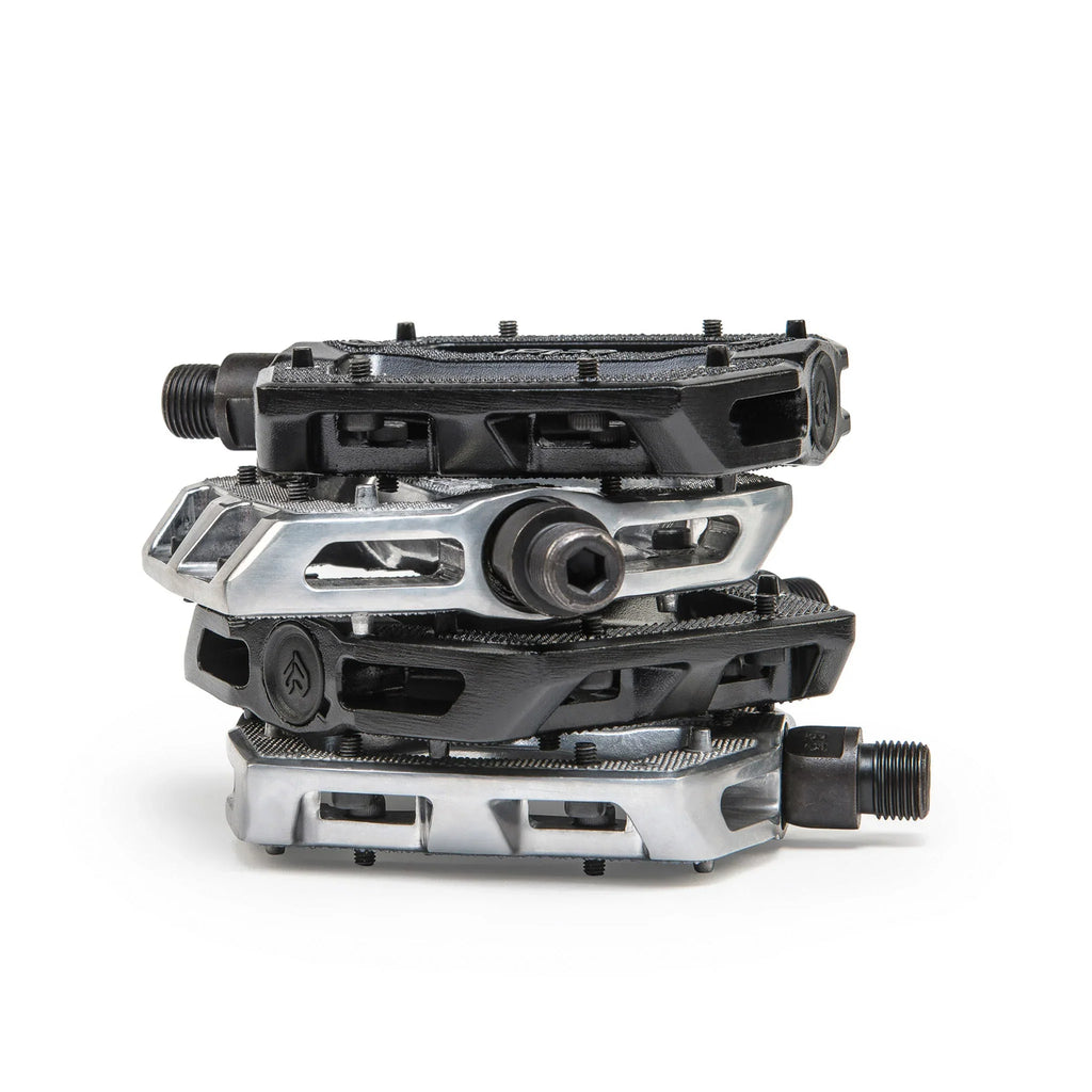 Our riders asked for a low profile, micro-style alloy pedal using the loose ball bearing system and integrating a replaceable crmo spindle, we scratched our heads and shortly after delivered the Slash Alloy Pedal. It’s somewhere close to perfect in size, features a lightweight design and comes with replaceable pins. It’s basically a faultless pedal.
