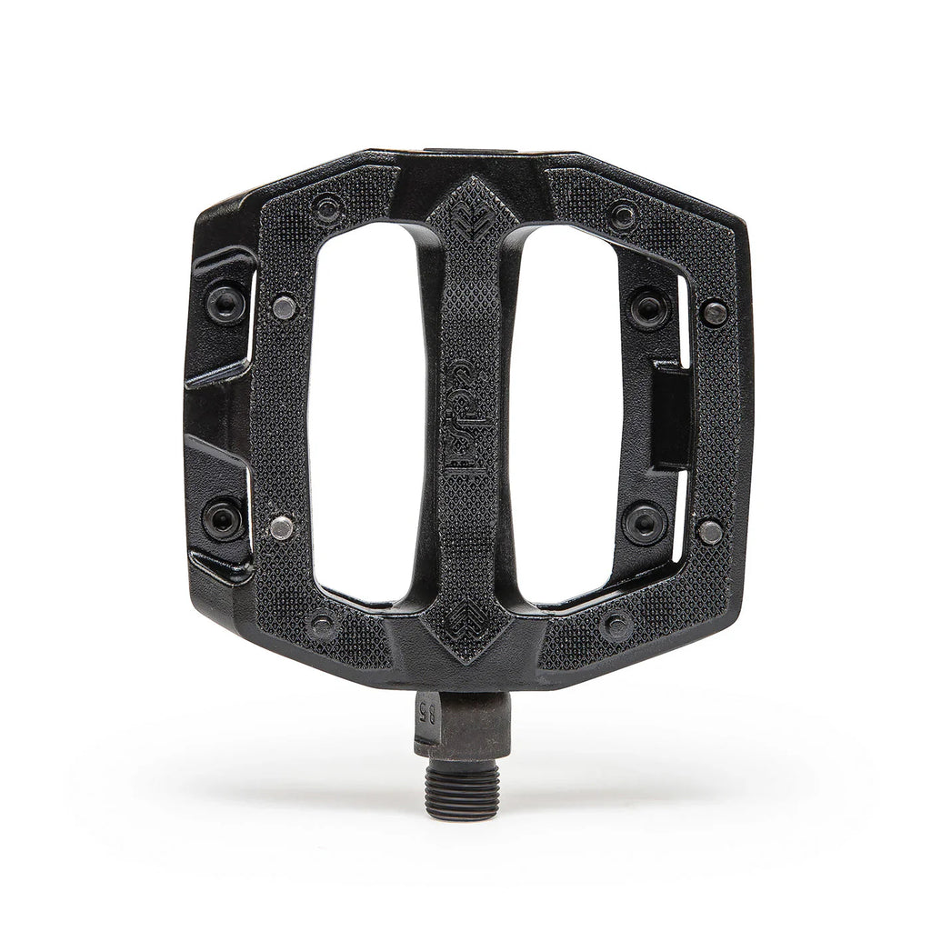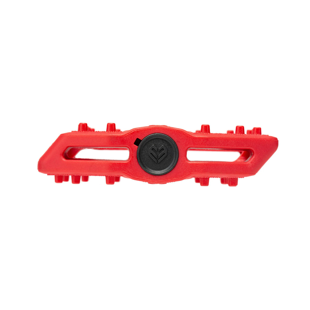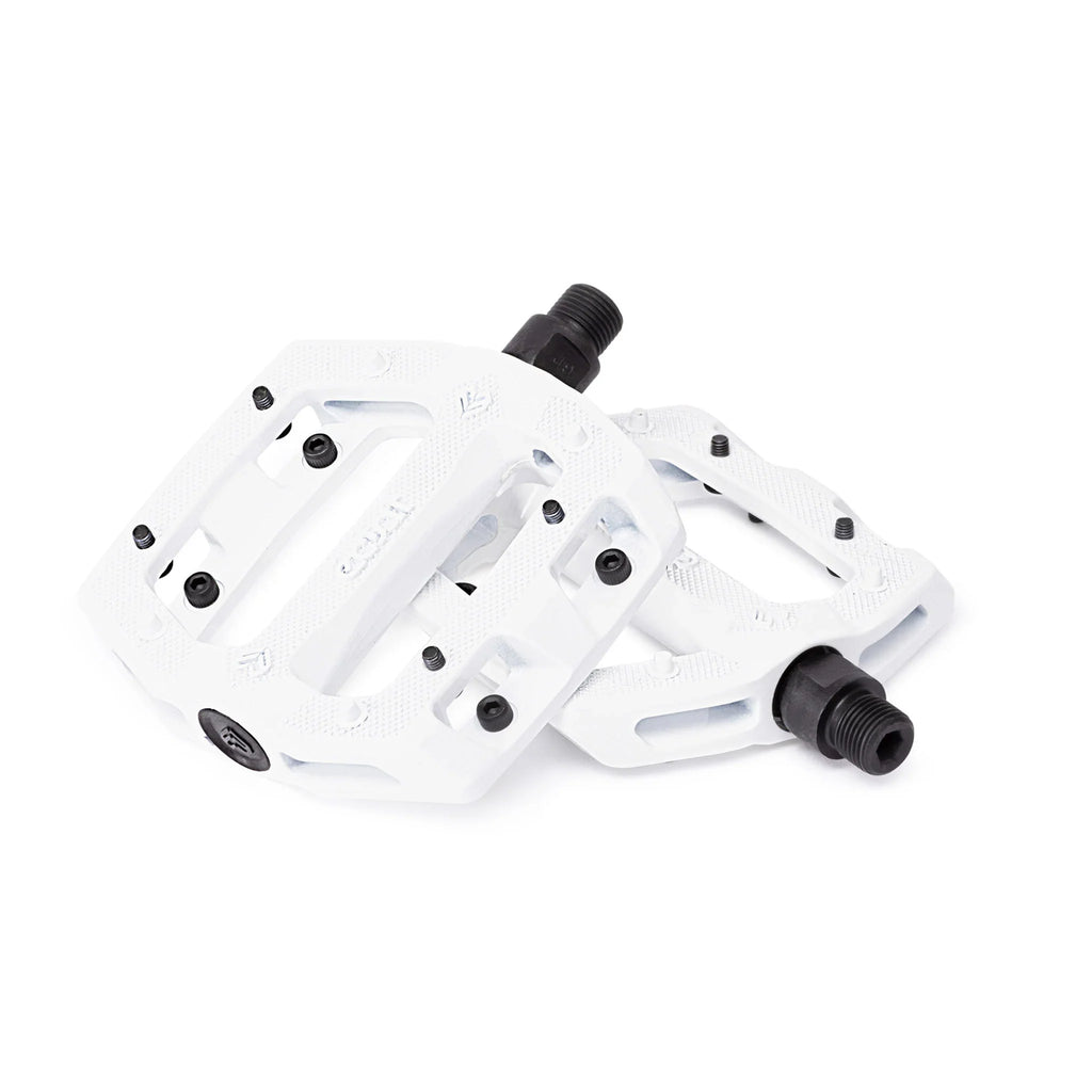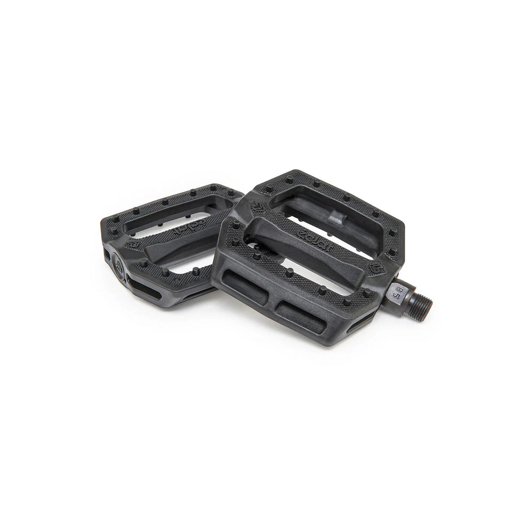 Our riders asked for a low profile, micro-style pedal using the loose ball bearing system and integrating a crmo spindle, we scratched our heads and shortly after delivered the Slash nylon pedal. It’s somewhere close to perfect in size, features a lightweight design and has a nice knurled top surface.