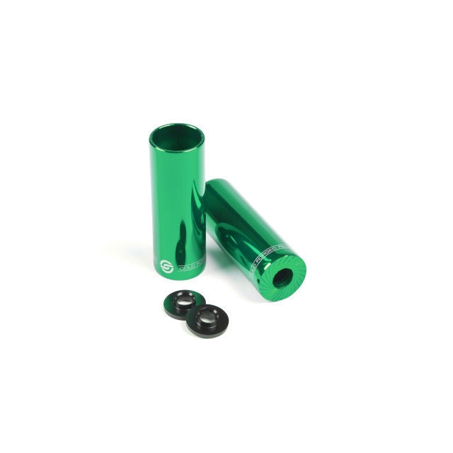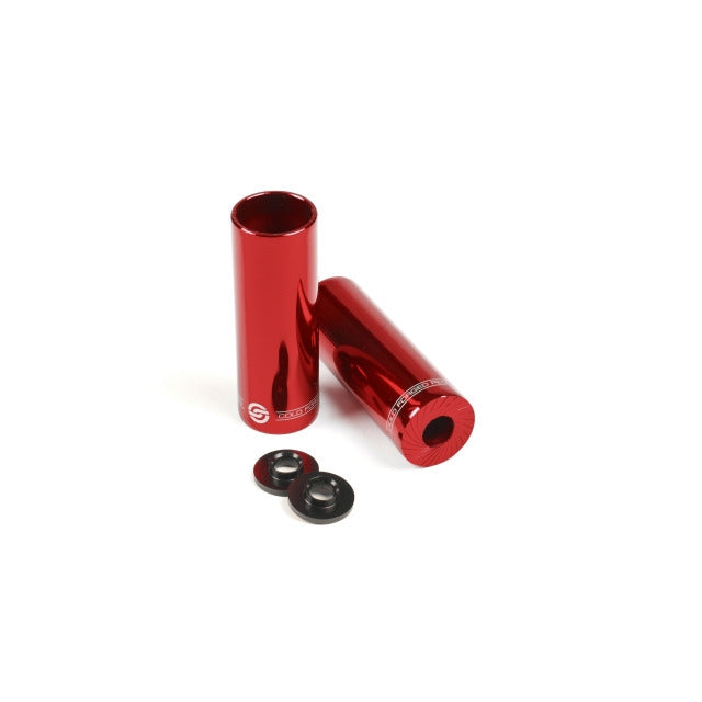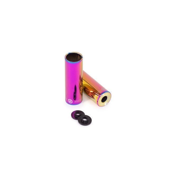 Steel is real! Our am steel pegs come in a pair and will slide on everything. Longer than most at 4.15" and available in a bunch of colours including oilslick!